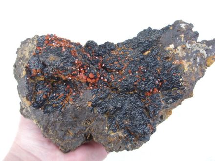 | + | |align="center"|[[Image:Vanadinite.JPG|thumb|440px|Vanadinite sur goethite du Maroc.]] | ||