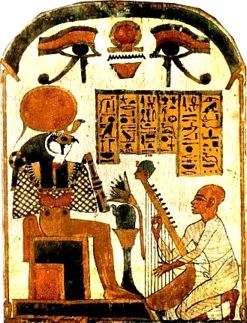 | − | |align="center"|[[Image: Ste.jpg |thumb| | + | |align="center"|[[Image: Ste.jpg |thumb|247px|<center><small><b><big><big><FONT color=#B8860B> Stèle Djed-Konsou-iouefankh </big><big></FONT></small><FONT size="1pt"><b><FONT color=#B8860B>Le musicien Djedkhonsouiouefânkh-ânkh joue de la harpe devant le dieu Rê-Horakhty. Stèle en bois stuqué.</FONT></FONT> </center> </b>]] |