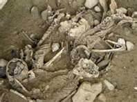 | − | + | <b>D</b>ans un ensemble de 260 fosses coniques creusées entre 120 et 80 avant notre ère dans l’humus, à une profondeur de 80 cm à 5 m, reposaient des ossements humains – squelettes en position repliée, crânes isolés représentant probablement des trophées guerriers – et animaux, surtout bœufs et chevaux. | |