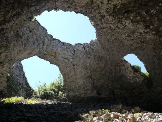 La particularité réside ici dans le fait qu'il reste une croute superficielle formant ainsi un dôme creux percé de 3 ouvertures !