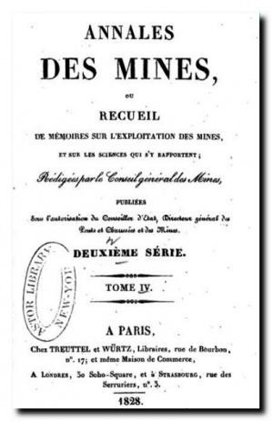 Le Journal des Mines et les Annales des Mines (1794-1881) ont été numérisés à l'initiative de la Bibliothèque de MINES ParisTech http://www.ensmp.fr/Accueil/.