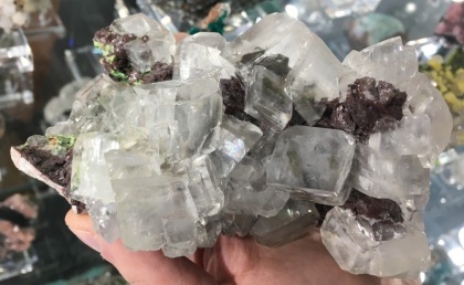 C'est surtout après les découvertes des seconde et troisième zones d'oxydation que les beaux spécimens envahirent les bourses et les vitrines, pour notre plus grand bonheur. Toutes sortes de cristallisations coexistent (rhomboèdres évidemment le plus souvent, mais aussi scalénoèdres dont les "dents-de-cochon" et autres "têtes-de-clou", pseudo-cubes...), avec des cristaux de toutes tailles (des calcites de plus de 20cm sont répertoriées), avec toute une gamme de couleurs (de l'incolore au noir) liées évidemment aux inclusions microscopiques (de minéraux, voire d'ions métalliques), citons :
