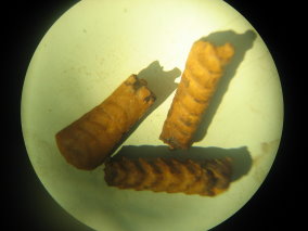 Rostres de bélemnite : Ils sont en aragonite finement radiée.