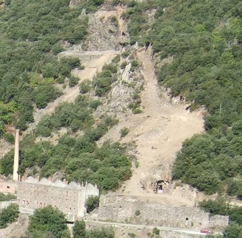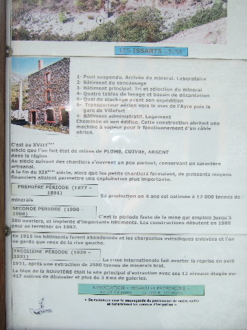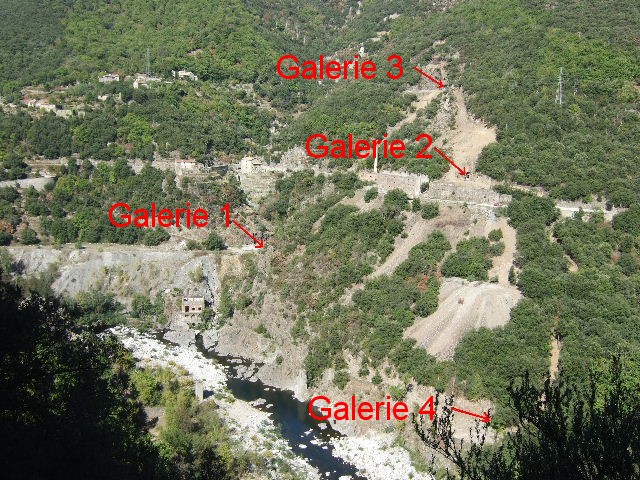 Avant d'entamer la montée de l'autre versant (mine des Issarts,) une photo générale avec l'emplacement des galeries. Il faut dire que ces mines s'étagent sur 417 mètres de dénivelée, avec 6 niveaux de galeries et plus de 3 kilomètres de galeries.