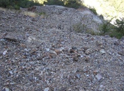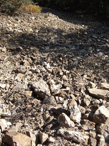 A partir de la route, la descente vers le Chassezac ne présente guère de difficultés ! Beaucoup de déblais des mines supérieures forment la pente.