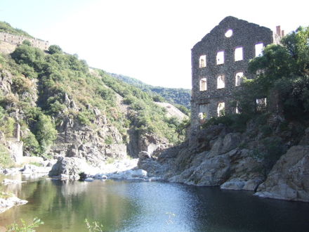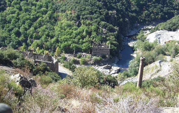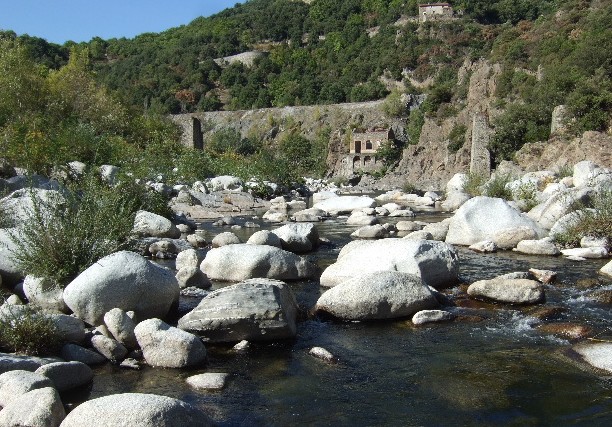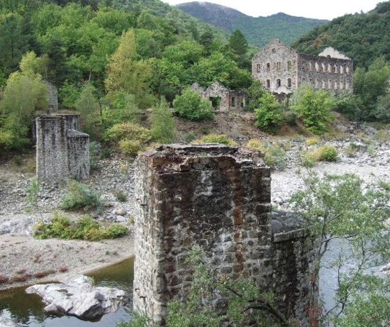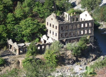 Nous allons commencer par la rive nord du Chassezac (zone dite de la Rouvière). Sur le bord de la route on observe d'abord un imposant bâtiment qui servait à l'administration et au logement.