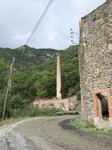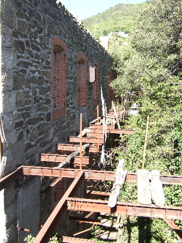 La cheminée proche, encore en très bon état, correspond à un bâtiment qui abritait une machine à vapeur permettant le fonctionnement d'un câble aérien.