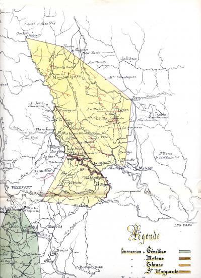 - La concession dite du Chassezac fut créée par décret du 23 Février 1887, au profit de la compagnie des mines de Génolhac par fusion des anciennes concessions de Thines et des Malons auxquelles s'ajoute la nouvelle concession dite concession de Ste Marguerite-Lafigère.