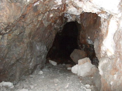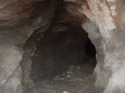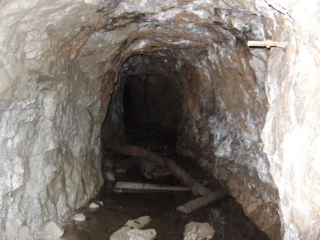 Galerie C3 (niveau 4). Les haldes de ce niveau et des niveaux supérieurs sont abondants. On y trouve barytine, galène, sphalérite, quartz ...
