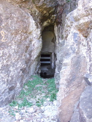 La plate-forme de la galerie 4 est à hauteur du "pont" qui permettait de passer en face. Il n'en reste que les piliers.