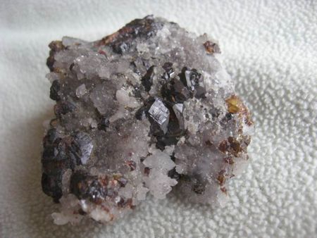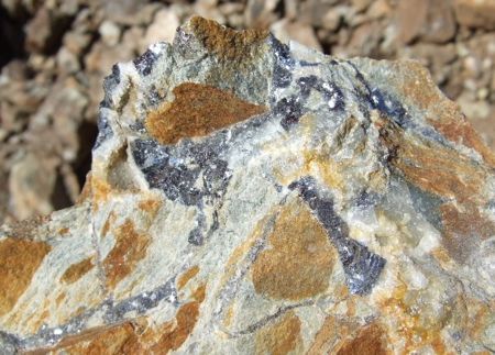 De nombreux minéraux ont été répertoriés sur ce site : quartz et barytine en particulier, ainsi qu'un certain nombre de sulfures (pyrite, sphalérite, galène) accompagnés de minéraux secondaires issus de leur altération. Nous allons en montrer quelques-uns.