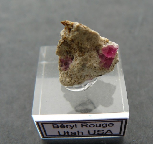 - un béryl rouge provient des Thomas Range, dans l'Utah. Ce béryl rouge en manganèse est aussi nommé bixbite, terme encore usité en français mais il doit être remplacé par celui de «béryl rouge», du fait de la confusion entre cette variété et l’espèce bixbyite qui elle est agréée par l’I.M.A..
