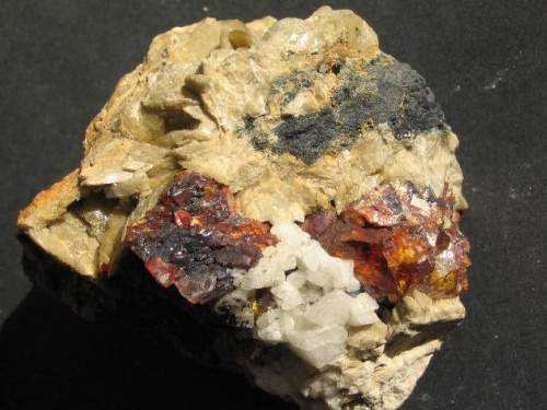 - Conditions de formation et/ou de gisement : La sphalérite est un minéral très commun que l'on rencontre dans les gisements hydrothermaux associée à d'autres sulfures galène, pyrite, chalcopyrite (" gîtes BPGC " - " BGPC " etc.), et à quartz, barite, fluorite, calcite, etc. On la connaît aussi dans des filons hydrothermaux associée à pyrite, pyrrhotite, magnétite. Enfin, la sphalérite est associée à la galène, à la calcite, à la fluorite dans les veines et cavités de calcaires (à l'exemple du Tri-States). Sulfure classique des gisements de cryolite d'Ivigtut, Groenland.