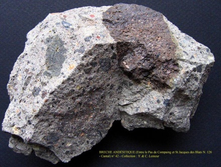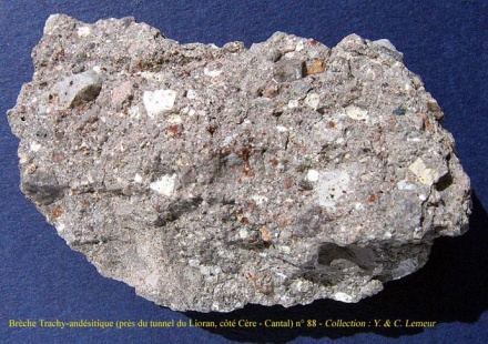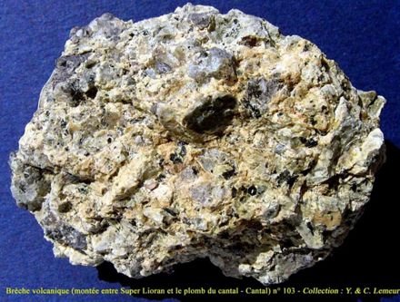 - Brèche volcanique ; en anglais volcanic breccia - igneous breccia : Brèche constituée de fragments de roches magmatiques volcaniques, auxquels s'ajoutent, parfois, des fragments de roches encaissantes, cimentés par des cendres et des lapillis. La fragmentation a des causes variées, explosions, remise en mouvement d'une lave dont la croûte s'était déjà figée, écroulement superficiel, etc.