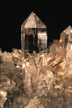 Le cristal de roche est une variété limpide, incolore, du quartz. Son nom rappelle l'époque (c'était avant l'invention du cristal au plomb), où le quartz portait le nom de cristal, du grec krustallos, glace, car la plupart de nos ancêtres ont pensé pendant fort longtemps que le quartz était de l'eau si fortement congelée que même l'exposition au soleil ne pouvait plus la faire fondre. L'invention du cristal au plomb fut suivie du distingo : " cristal de roche " - " cristal au plomb " (devenu, par la suite " cristal ").