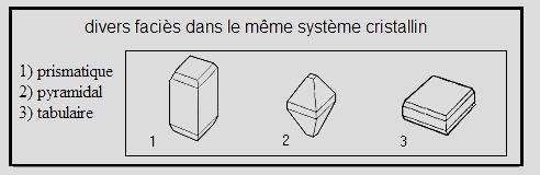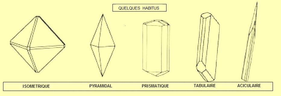 d’habitus isométrique, allongé, prismatique, aciculaire, tabulaire, etc...