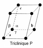 Ces systèmes sont caractérisés par le rapport des longueurs des trois vecteurs "a, b, c," , des trois axes "x, y, z," et des trois angles "α, β, γ," que forment entre eux ces axes ; les indices de Miller sont des coordonnées des vecteurs dans cette base.