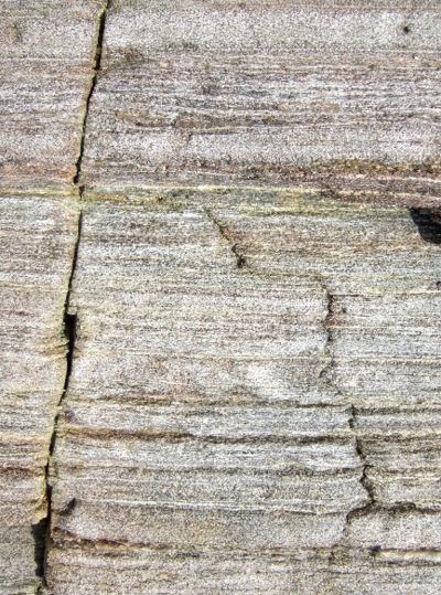On voit bien sur cet exemple que les couches se retrouvent, sans décalage, des deux cotés de la diaclase. Les Sables d'Olonne. Vendée.