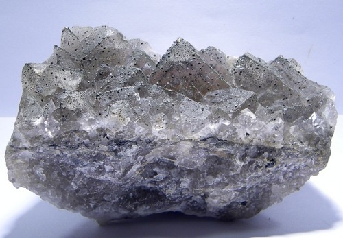 - Barytine : crêtée blanche, grise à rose nacré, en pompons de cristaux tabulaires... Les cristaux peuvent atteindre 4 cm.