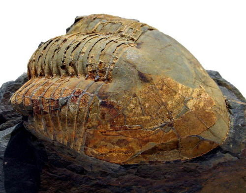 Ectillænus giganteus est une espèce très fréquemment rencontrée en position d’enroulement. Dans les gisements ou la faune est conservée dans des nodules, il n’est pas rare que le nodule soit en fait dans sa totalité un Ectillænus enroulé (Voir photo n° 20).