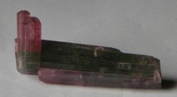 - Couleur : Vert, bleu, rouge, jaune, orange, blanc, incolore, noir, rose, bleu vert. La couleur peut varier dans un même cristal : perpendiculairement à l'allongement (du centre du cristal à sa périphérie) = tourmalines melon d'eau ; ou parallèlement à l'allongement (du bas du cristal à son sommet) par exemple : tourmalines tête de nègre.