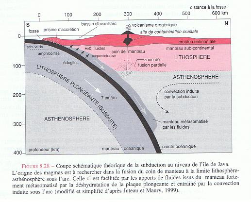 Lors de la migration du plancher océanique vers la subduction, les roches migrantes subissent un métamorphisme hydrothermal c'est-à-dire une modification des minéraux à l'état solide (formation de Pyroxène, plagioclase, amphibole, puis chlorite et actinote). On obtient alors des metagabbros et autres péridotites serpentinisées. Le SLAB subit ensuite un autre métamorphisme ; lors de la subduction les roches passent par des faciès, endroit où se formeront de nouveaux minéraux en fonction des conditions de pression et de température.