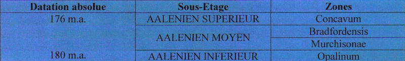 Zonation de l'Aalénien