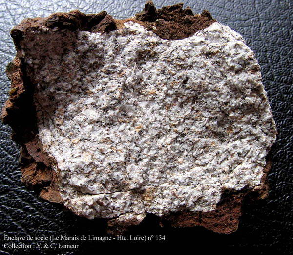 | actuel | 23 janvier 2009 à 16:21 | 600 × 521 (141 Kio) | Osiris (discussion | contributions) | ENCLAVE DE SOCLE (Maar du Marais de Limagne – Hte Loire) Xénolite de roche granitique issu du socle dans un magma basaltique légèrement bulleux avec parfois un aspect de brèche : éléments pulvérisés et soudés (voir spécimen EV-133). Présenc |