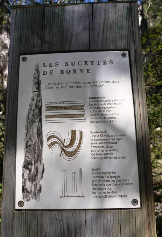 Panneau explicatif. Les Sucettes de Borne (Drôme).