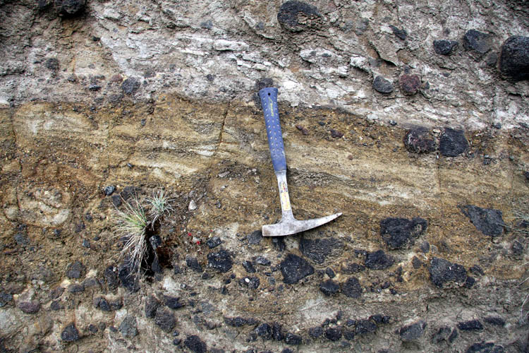 Alternance de bancs parallèles, ceux de lahars bien individualisés à base conglomératique et sommet à fine granulométrie.