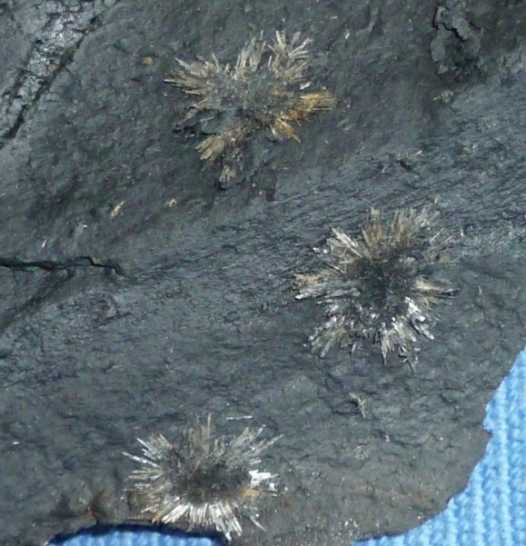 Gypse de néoformation. Schistes kerabitumineux de la grève de Porsguen (29). (photo le géologue du 35)