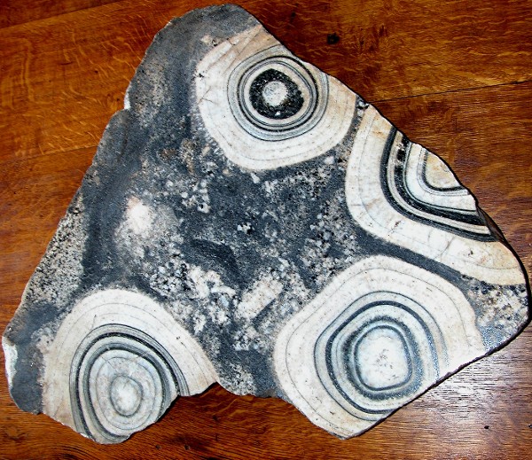 Monzonite orbiculaire multicouche de Kangasala en Finlande Echantillon sans N° de la colletion A. Lacroix du MNHN de Paris