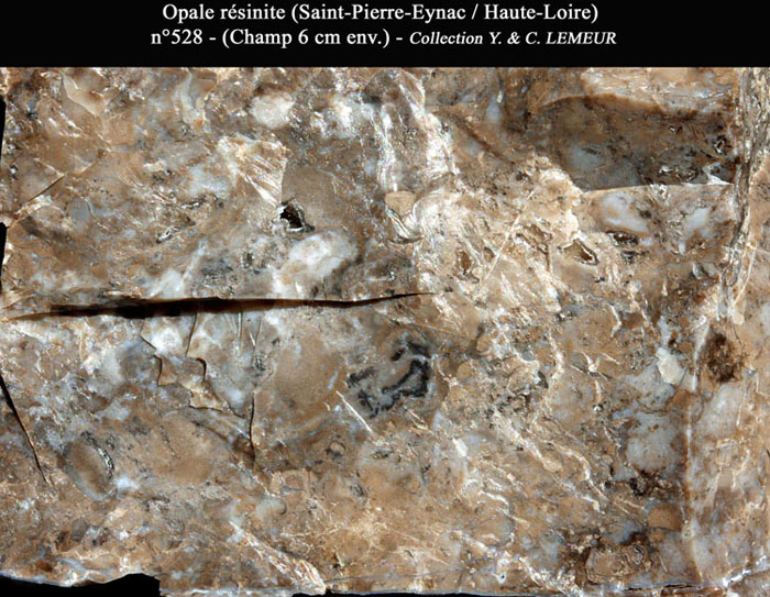 | actuel | 6 mai 2012 à 15:36 | 700 × 543 (176 Kio) | Osiris (discussion | contributions) | <b>Saint-Pierre-Eynac (Haute-Loire) France.</b> L’opale résinite de Saint-Pierre-Eynac est une roche siliceuse formée à partir d’une activité hydrothermale liée au volcanisme régional (volcan explosif (phréatomagmatique) à magma trachy-phonol |