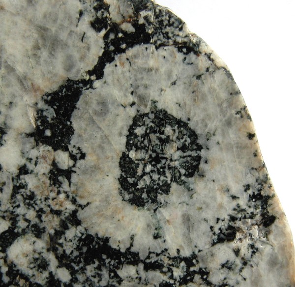 Orbicule simple à noyau surmicacé. Gisement, carrière de Loretto di Tallano en Corse. Photo Tourmaline.