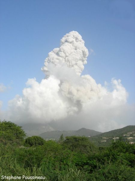 Eruption de cendre de Soufrière Hills vue depuis les Vue Pointe Hotel (juillet 2005)