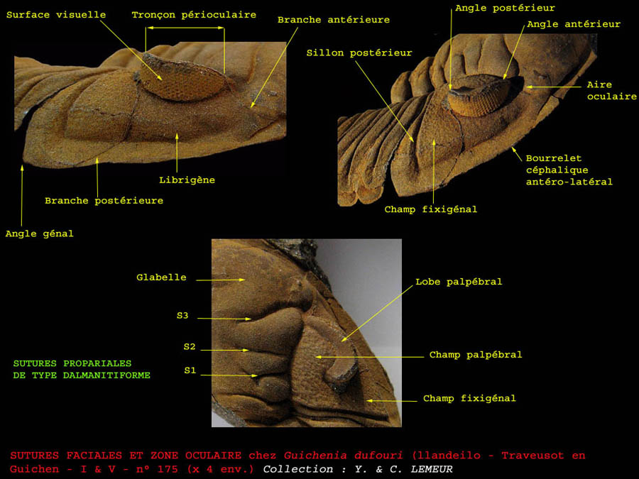 Suture faciale et zone oculaire chez Guichenia dufouri (Llandeilo - Traveusot en Guichen - I & V)
