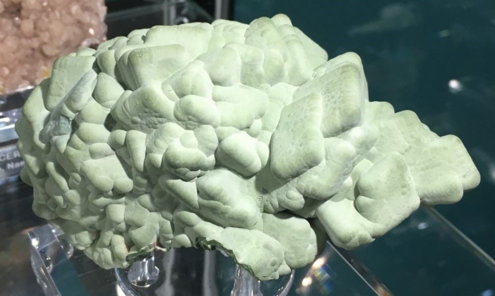 Fichier:Tsumeb mottramite sur calcite.jpg