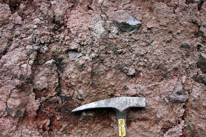 actuel12 novembre 2010 à 17:20Vignette pour la version du 12 novembre 2010 à 17:20700 × 466 (186 Kio)Osiris (discussion | contributions)Tufs bréchiques particulièrement spectaculaires. Matrice cendreuse importante, blocs de laves diverses pulvérisés, nombreux fragments du socle (origine granito-gneissique). Du fait de leur très forte hétérogénéité pétrographique, de leur classe