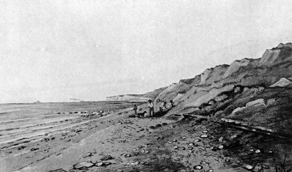 11.1. Fouilles entreprises en 1896 dans le Kimmeridgien d’Octeville (Seine-Maritime) pour l’extraction d’un squelette du stégosaure Omosaurus.