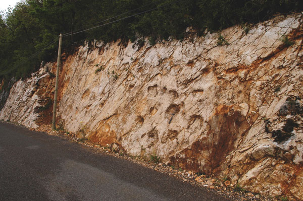 11.4. Pistes de sauropodes à la surface d’un banc de calcaire tithonien à Coisia (Jura).