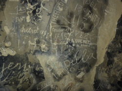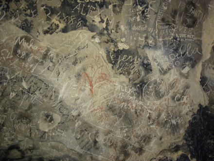 On peut d'ailleurs observer (c'est une des curiosités de cette mine) sur certains plafonds ou parois la présence de nombreux graffitis dont le plus ancien remonte au 17ème siècle, graffitis qui traduisent l'occupation de ce site.