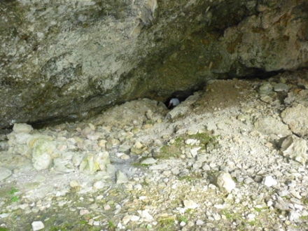 Pratiquement pas de déblais visibles à l'extérieur et très peu de zones minéralisées sont repérables à l'intérieur.