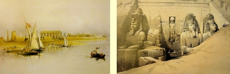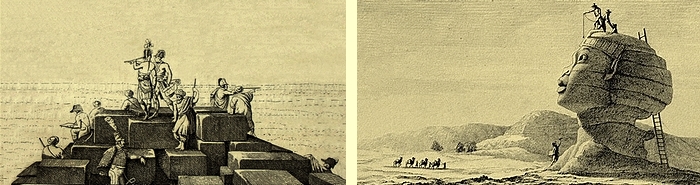 - Ajoutons que leur travail ne sera pas de tout repos... comme le précisera, à juste titre, le minéralogiste Déodat Gratet de Dolomieu, chargé par ses confrères de transmettre leurs doléances à Bonaparte « il fallu plus d’une fois disputer le terrain que l’on avait à explorer !... » Sans parler des terribles conditions : marche à travers les sables brûlant par 45° de chaleur et plus... sera pour ces savants une épreuve nouvelle et terrible, qu'ils surmonteront assez rapidement... stimulés par les extraordinaires découvertes qu'ils vont y faire !