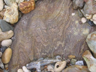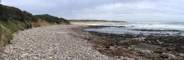 -L'érosion ultérieure (et encore actuelle) détruit le lias silicifié (éboulements). L'action de la mer transforme ensuite ces morceaux en galets arrondis qui couvre la plage.