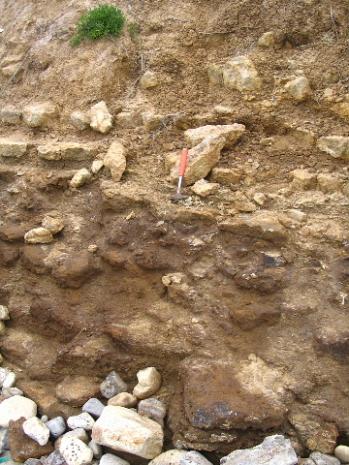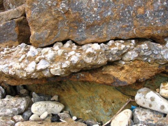 -une couche de lias silicifié -une couche de galets arrondis soudés