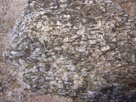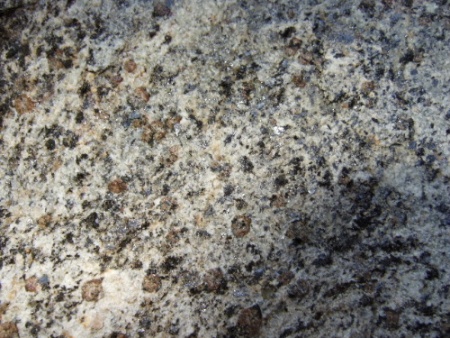 Associé souvent au disthène et typique aussi de ce métamorphisme, nous pouvons observer aussi la présence de staurotide en petits cristaux noirâtres :