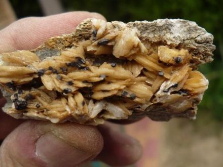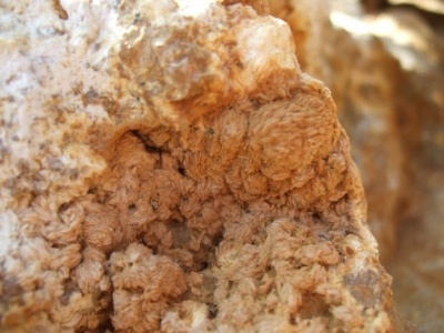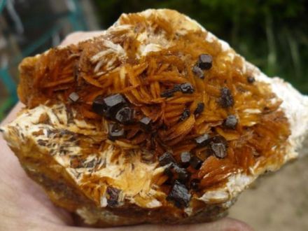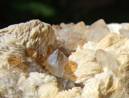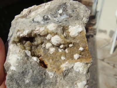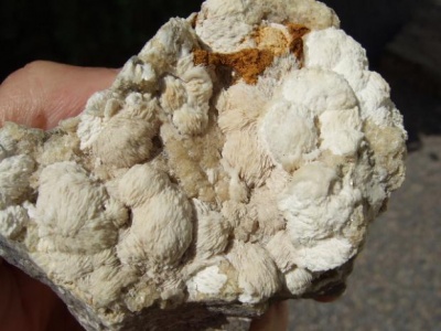 Dans le lias (silicifié ou non) bien sûr, mais aussi dans des filons du socle comme nous le verrons plus tard ! Généralement massive, elle peut se rencontrer souvent en crêtes ou en pompons blanchâtres à crème. La présence d'oxyde fer fer la teinte fréquemment en rouille ! Les pompons de barytine font environ 1 à 2 cm ! La taille parait assez constante dans tout le lias silicifié.
