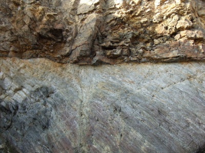 En dessous de cette couche de Pliensbachien, se trouvent les premiers dépôts de lias, posés directement sur le socle hercynien érodé !