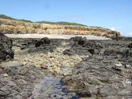 Mais ATTENTION, la mer à marée haute rejoint la falaise en plusieurs endroits ; donc, ne faire cette sortie qu'à marée basse ou descendante (le mieux!) et compter environ trois heures pour rejoindre le bout de la pointe, si vous voulez vous donnez la peine d'observer et d'échantillonner.