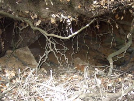 Dans les broussailles, non loin des haldes il est encore possible de détecter l'entrée d'une ancienne galerie.